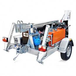 Die Erdkabelwinde 3400 ist eine hydraulisch betriebene Winde mit variabler Zuggeschwindigkeit und -kraft. Durch doppelte Spillräder hat diese Winde immer die maximale Zugkraft zur Verfügung. In diesem Fall 4.000 kp. Fahrgestell mit Federn und Bremsen und verstellbaren Stützbeinen. Hydrauliksystem mit variabler Pumpe zur vollständigen und variablen Steuerung von Zugkraft und Geschwindigkeit. Serienmäßig großzügig ausgestattet. Wird immer mit 1000 m Kabel, Manometer und Schutzabdeckung geliefert.